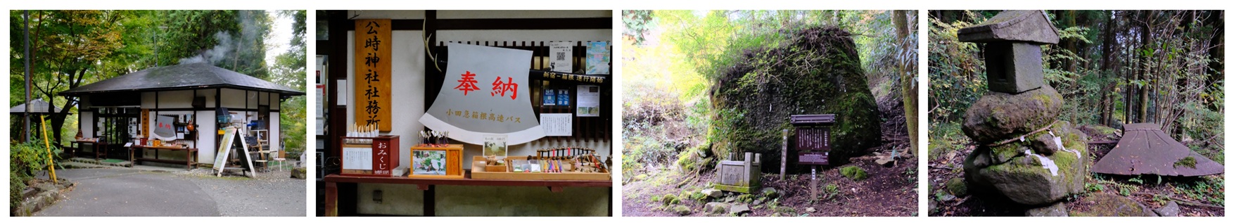 周辺には金太郎が手毬にしたと言われる「手毬石」や蹴落としたと言われる「蹴落とし石」、現在の社殿が建立される以前は祭祀が行われていた元宮「奥の院」が存在する。本誌編集長がチャレンジしたところ、奥の院までは25分程。
